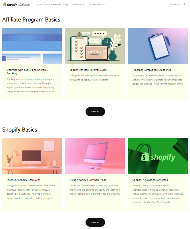 By partnering with entrepreneurs, educators, influencers and content creators, Shopify is strategically expanding its global audience with little cost. The Shopify Affiliate Program is free to join and incentivizes partner affiliates with commissions for subscribers and point-of-sale pro referrals. These affiliates also serve as influencer experts, educating their followers on entrepreneurship and e-commerce using Shopify. But they aren’t left to their own devices.