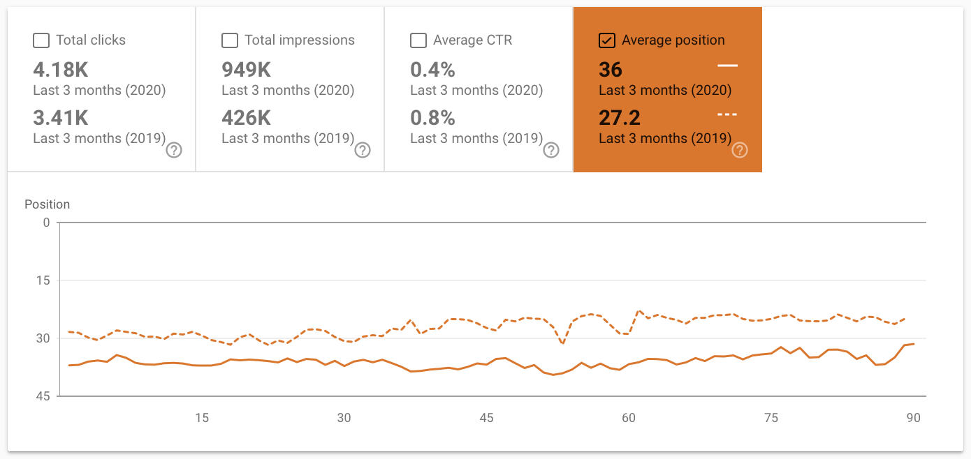 For instance, we saw this in Search Console when we compared average position of the last 3 months year-over-year:
