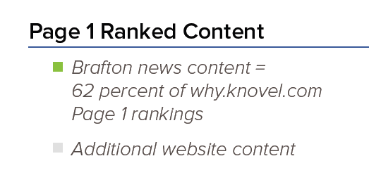 Knovel’s regular content helped it get into the News section of Google search. The company now publishes a balanced mix of audience-centric subjects, with each piece tailored for one of its key markets. Burnis is confident the Brafton content meets the standards of her highly educated audience.
