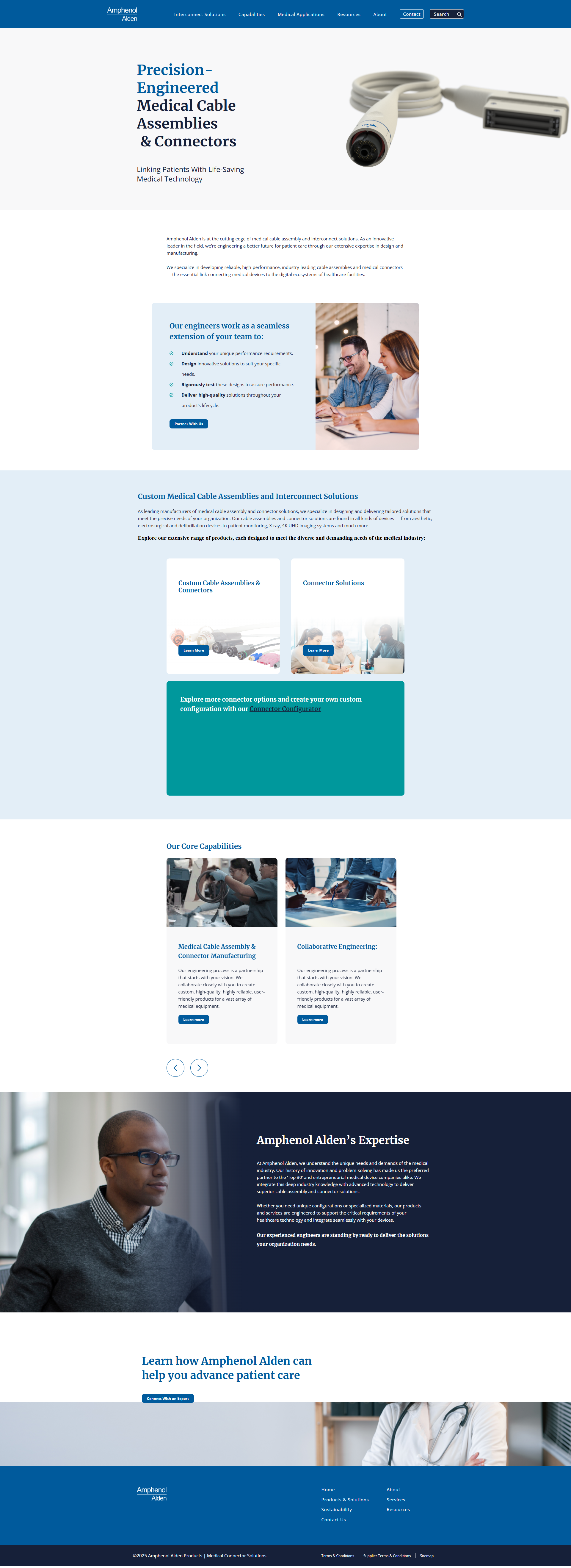 The solution for this particular client was a complete rebuild on Drupal, a complex CMS that offers robust enterprise-level security and content scaling features — a no-brainer for Amphenol Alden, precision engineers of medical cables and assemblies. Approaching a full-site redesign is a big undertaking, but when you add in the challenges of the chosen CMS, it takes an adept team to drive success.